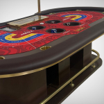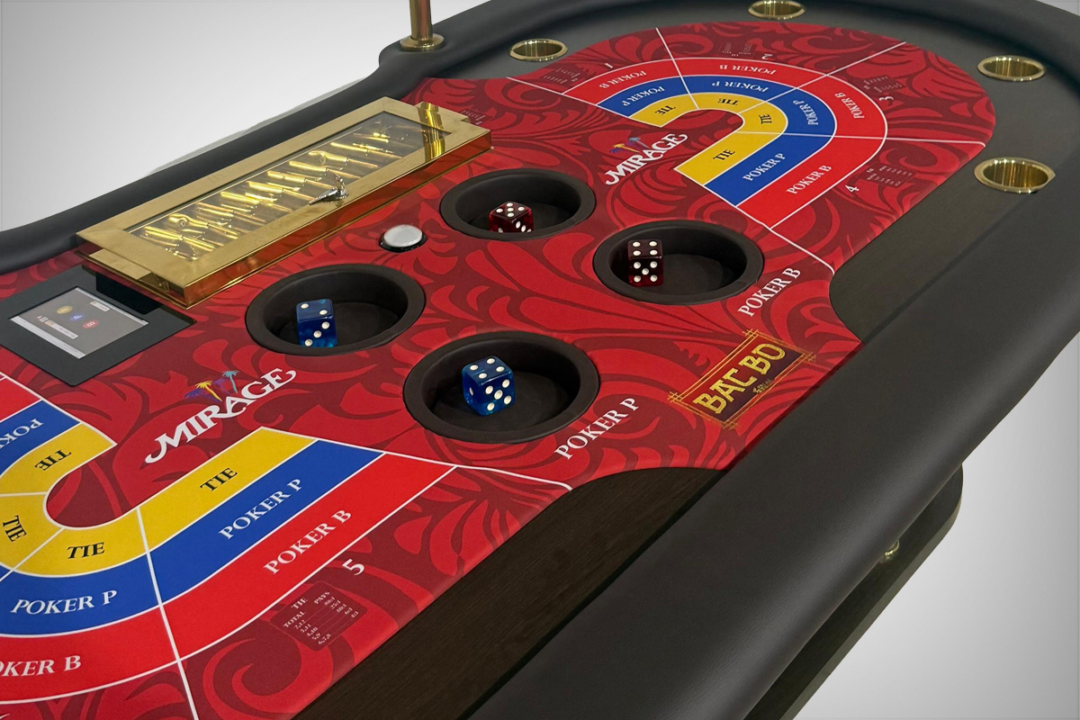Mesa profissional e oficial de Bac Boo (Table Baccarat). Mesa 100% personalizada com excelente material e perfeito acabamento. Fabricada em MDF de 15mm, espuma de alta densidade na borda, couríssimo sem emendas, fórmica e tecido especial de carteado.