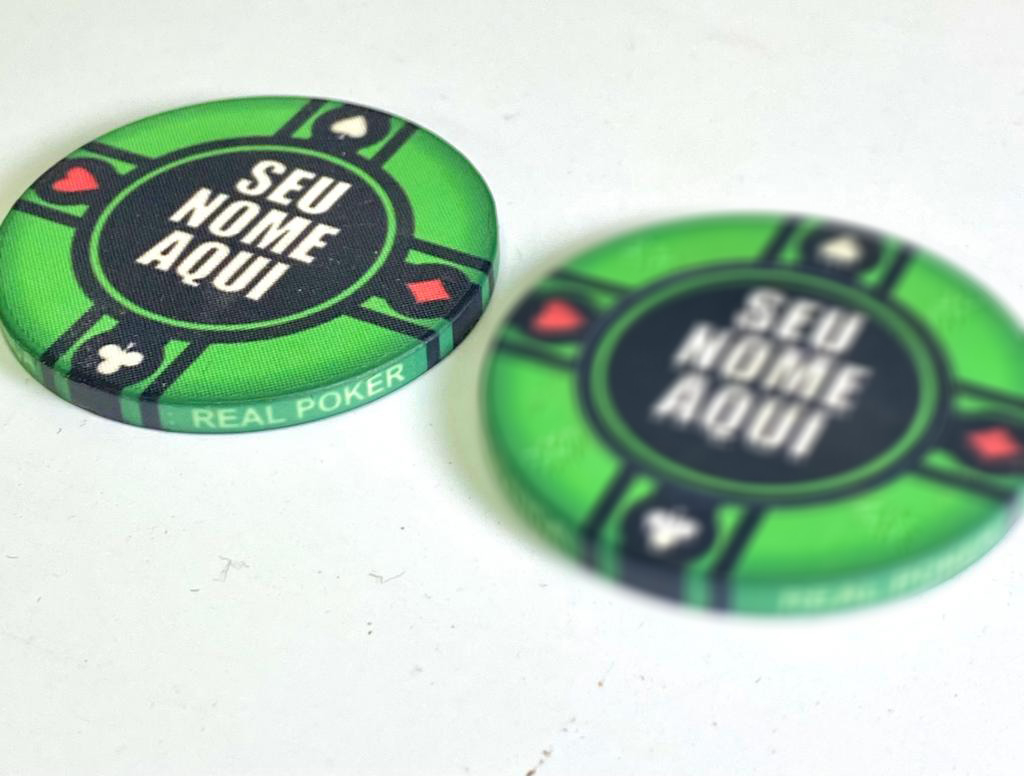 Fichas Totalmente Personalizada Insira sua logo ou desenho, é possível personalizar inclusive a borda da ficha. A arte é feita pela Real Poker sem custo adicional.